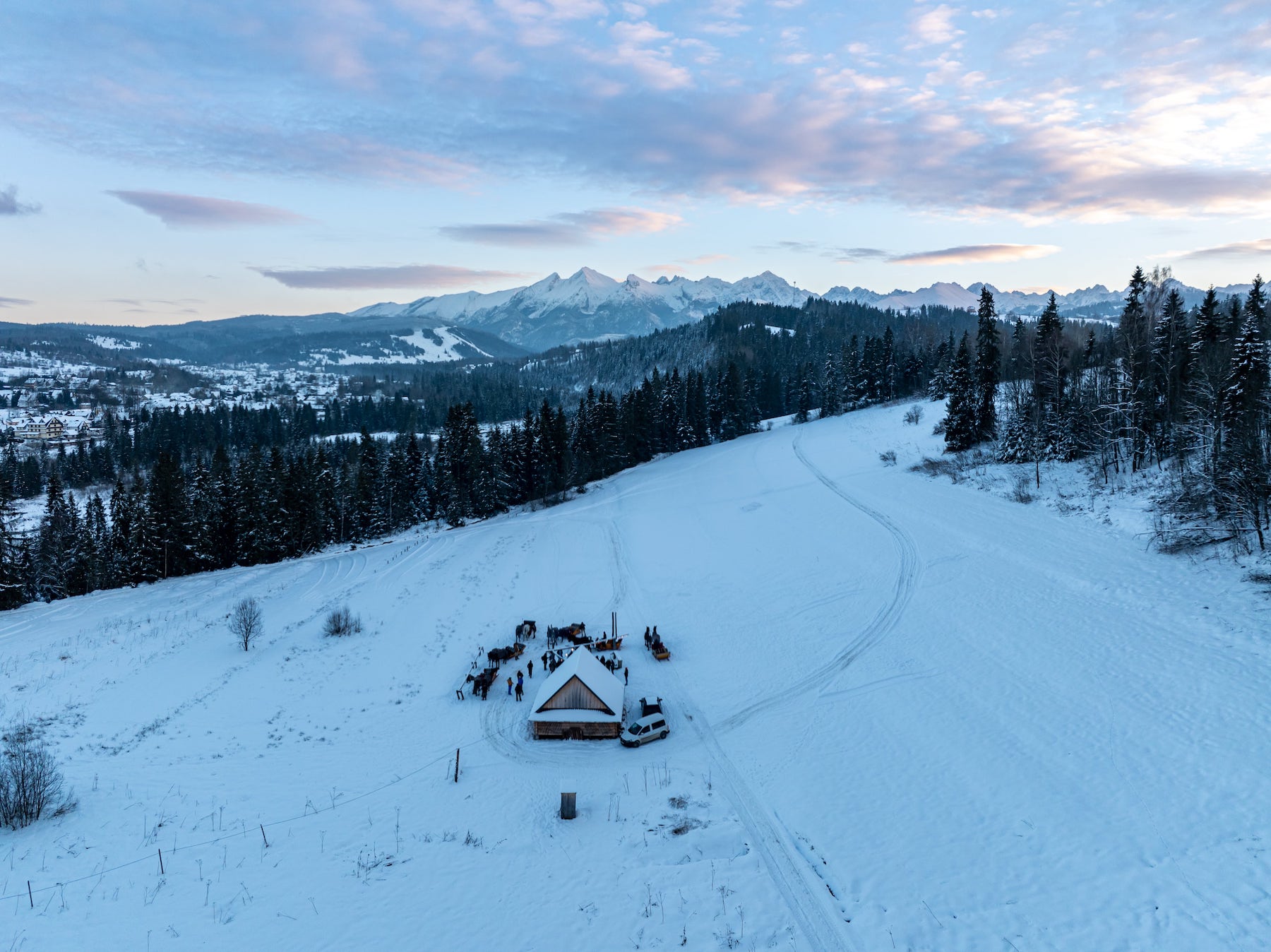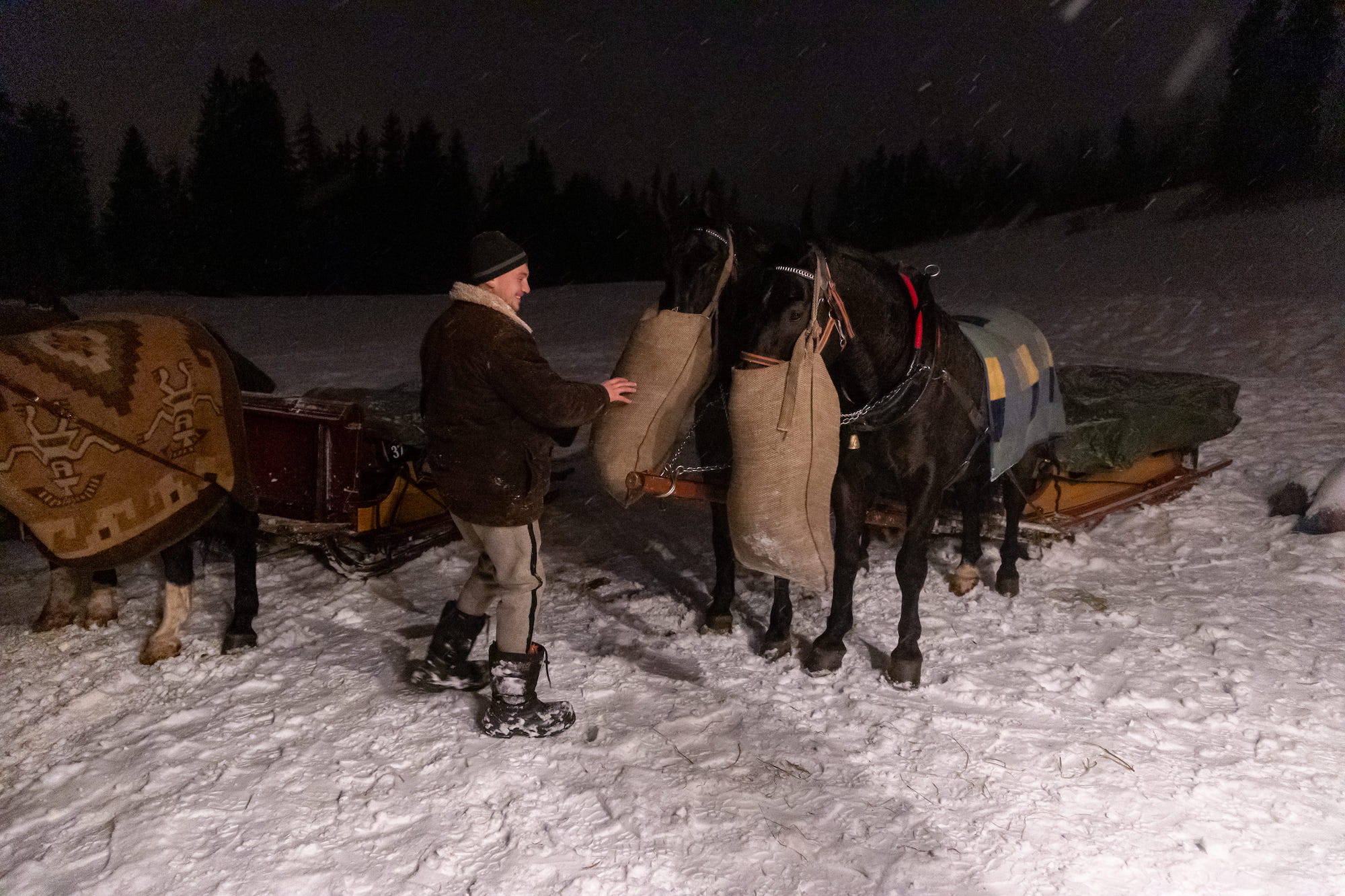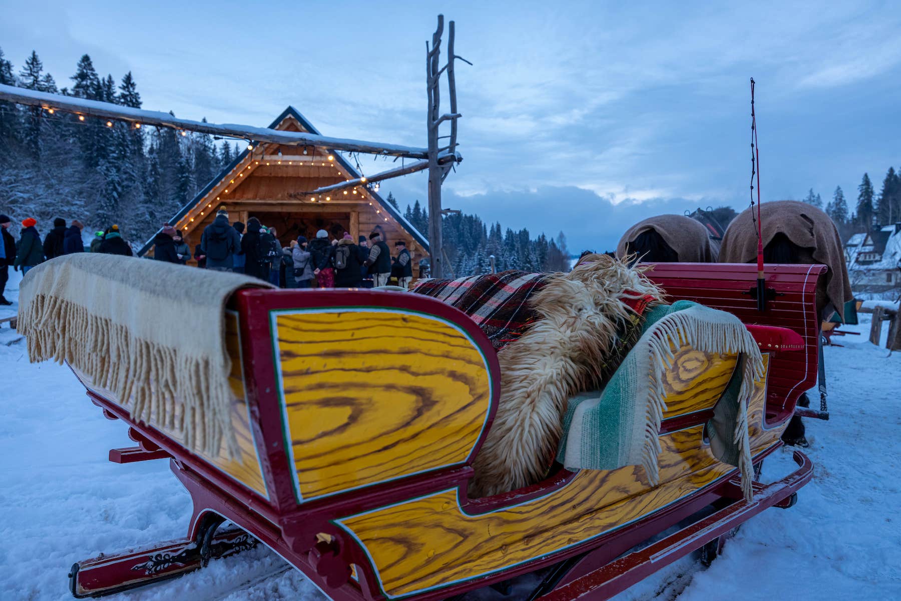 Przekonaj się, jak wyglądają nasze zimowe atrakcje – sanie z pochodniami, bajkowe krajobrazy i ognisko w góralskim stylu.